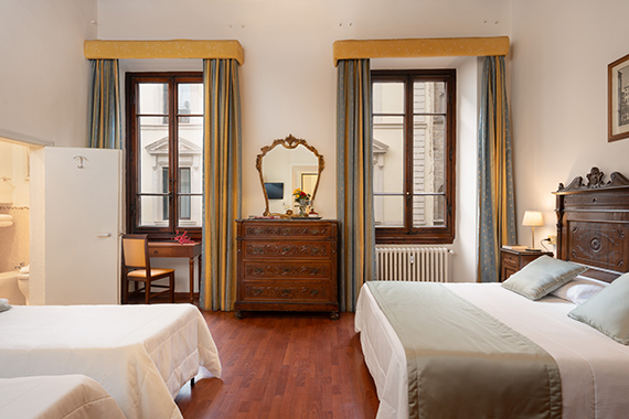 La Residenza Storica Hotel Cimabue di Firenze è dotata di ventidue graziose ed esclusive camere che offrono, attraverso le loro ampie finestre ottocentesche, splendidi scorci dell’antica Firenze: quella trecentesca dell’antistante palazzo in pietra, un tempo ospedale di Bonifazio Lupi, quella rinascimentale dello splendido Palazzo Pandolfini e di quelli adiacenti.